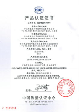 中國國家強制性產品認證證書