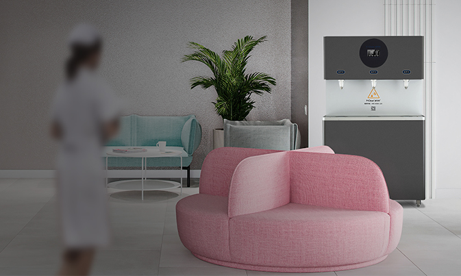 商用直飲水機直接與自來水管相連接,將自來水凈化成純凈水,現制現飲,避免二次污染。而且商用凈水設備出水量較大,可以充分滿足醫院分時段的集中用水,更加方便、健康、智能與安全。