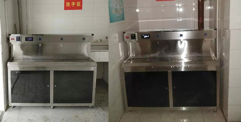 一般校園打水高峰都是集中在課間休息的短短10分鐘,傳統的單龍頭或雙龍頭的開水器每次只能一人或兩人同時打水,導致有些學生來不及打水,因此校方選用了4龍頭的直飲水設備,能多人同時打水,減少學生排隊等待打水的時間;大容量水箱,保證供水量;智能水控,水不開不出水,確保飲用的水都是經過高溫殺菌;多級精密過濾系統,高效去除水中有害物質,出水水質安全衛生;為全體師生飲水健康保駕護航!