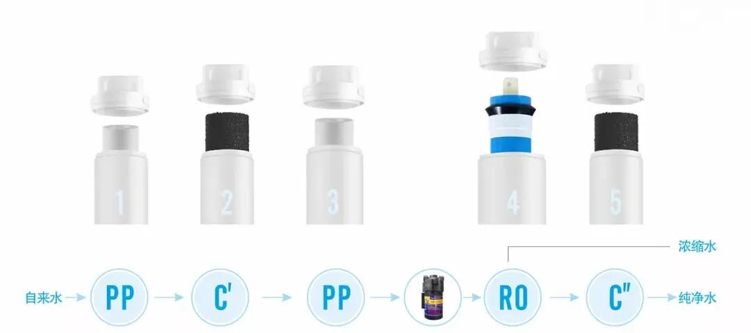 PP棉+顆粒活性炭+精密PP棉可以對自來水進行粗過濾,攔截泥沙、鐵銹等小顆粒雜質,吸附水中異色、異味和余氯,并且對后級濾芯進行保護;