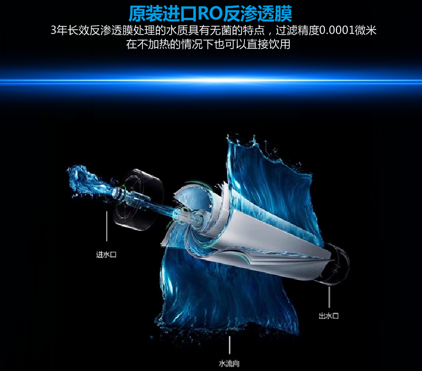RO反滲透過濾精度為0.0001微米,有效攔截細菌、重金屬、有機物等;最后一級后置活性炭則是為了增加微量對人體有益的礦物質,并改善口感。