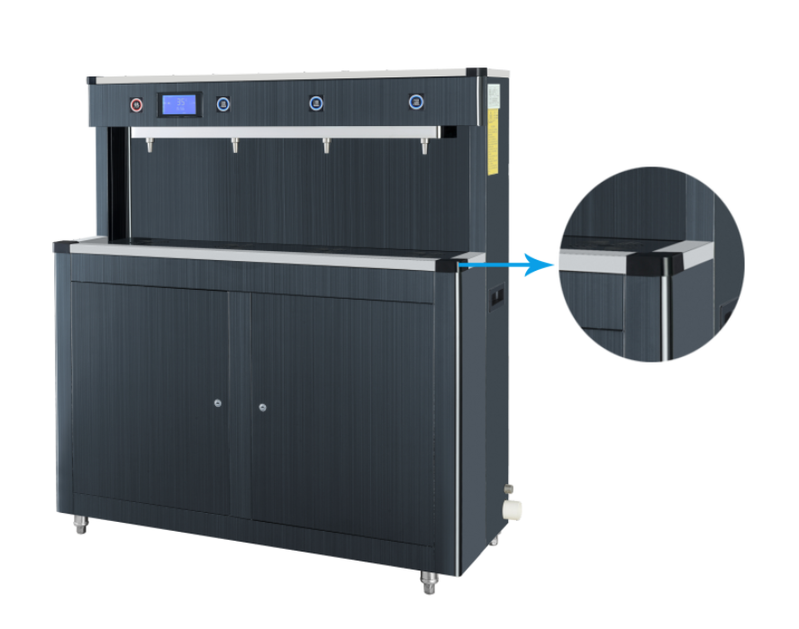 直飲機作為提供安全、健康水的設備,時常入駐各種場所,如:校園、地鐵站、企業、大型商場等人流量較大的場所。直飲機屹立其中,在人來人往的時候難免會碰撞到設備,如果直飲機的邊角是90度尖角設計的話,那么發生碰撞時就會對人體造成一定的傷害。