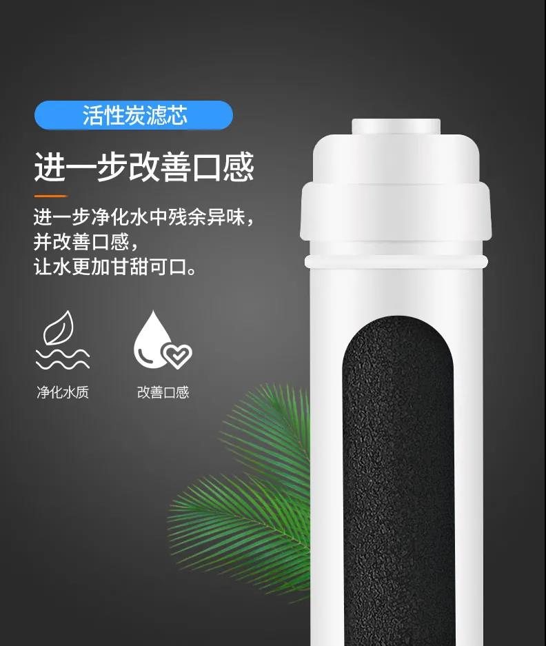 后置活性炭的作用:去除異味、改善口感。因為一般來說,經過RO膜凈化后出來的水就已經是純水了,但是很多人考慮到一個太純的水是否會導致礦物質缺失的問題,所以加了后置活性炭,這樣出來的水還是有點甜的味道。