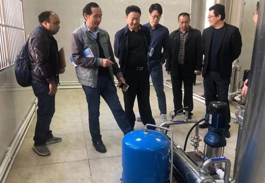 隨后,與會人員到校園內的大型水處理設備室和各個直飲水點進行實地查看工程的建設質量和使用情況。大家一致表示,該工程建設總體符合規劃設計和招標文件要求,同意通過驗收。