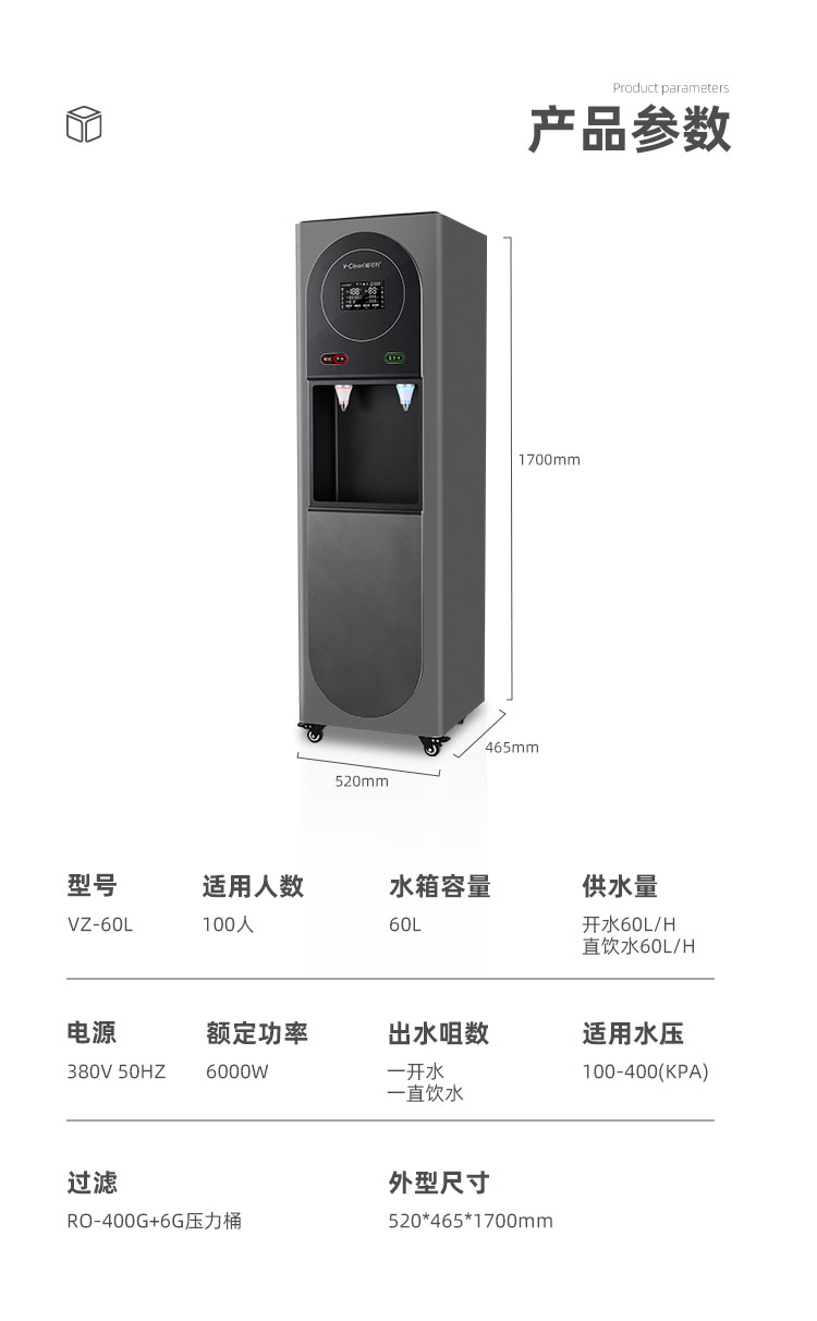 過濾系統(tǒng):五級(jí)過濾(RO400+6G壓力桶)
