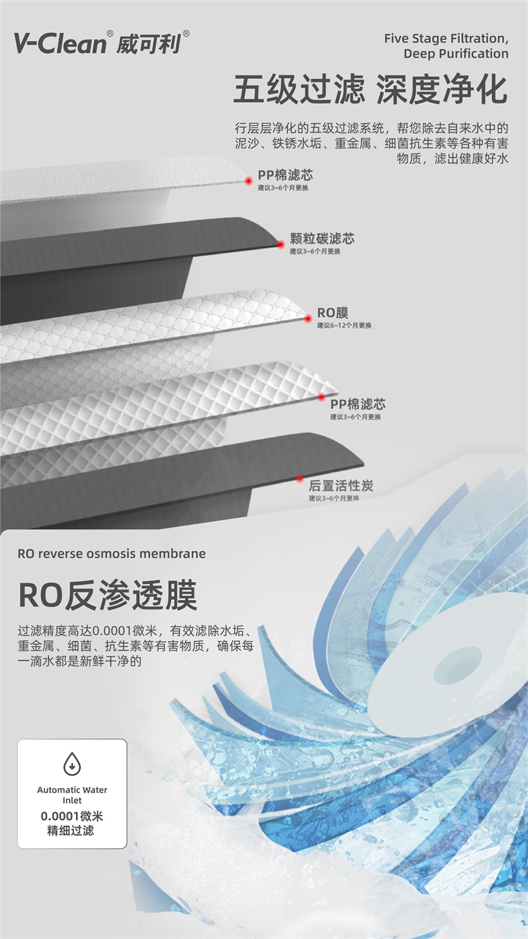 過(guò)濾系統(tǒng):五級(jí)過(guò)濾(RO100+3.2G壓力桶)