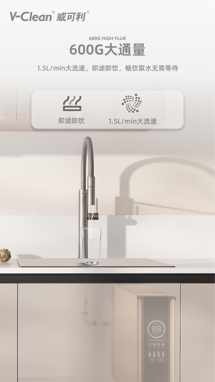 過濾系統:PP棉+顆粒活性炭+600G RO膜+后置活性炭