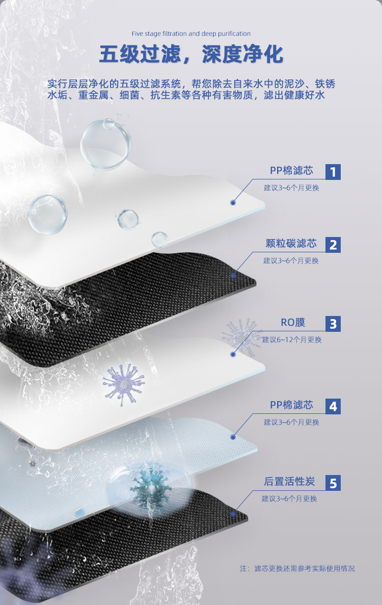 過濾系統:五級過濾(RO400+6G壓力桶)