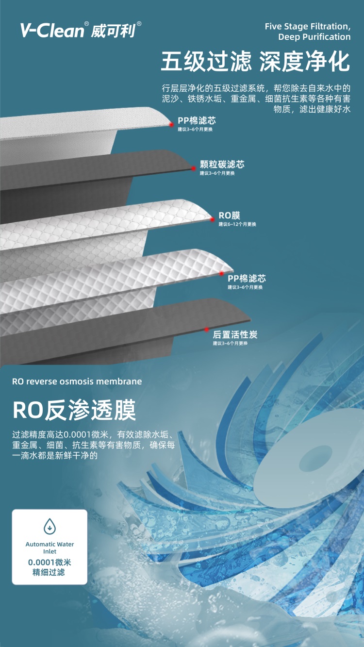 過濾系統:五級過濾(RO400+11G壓力桶)